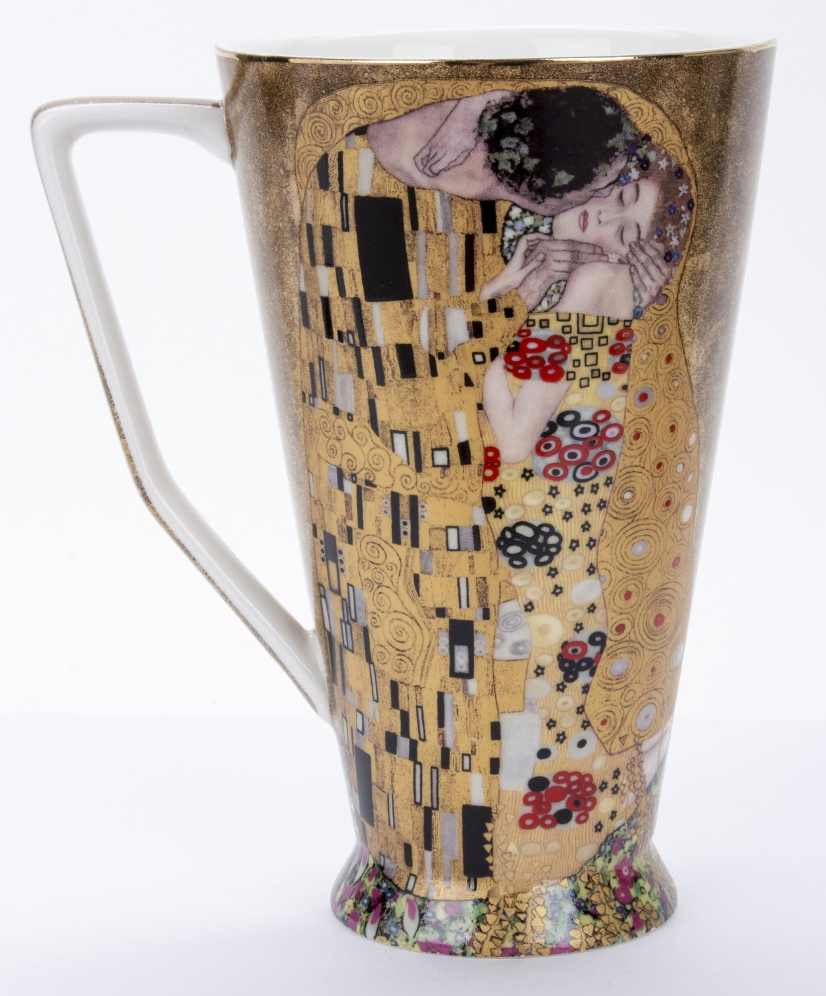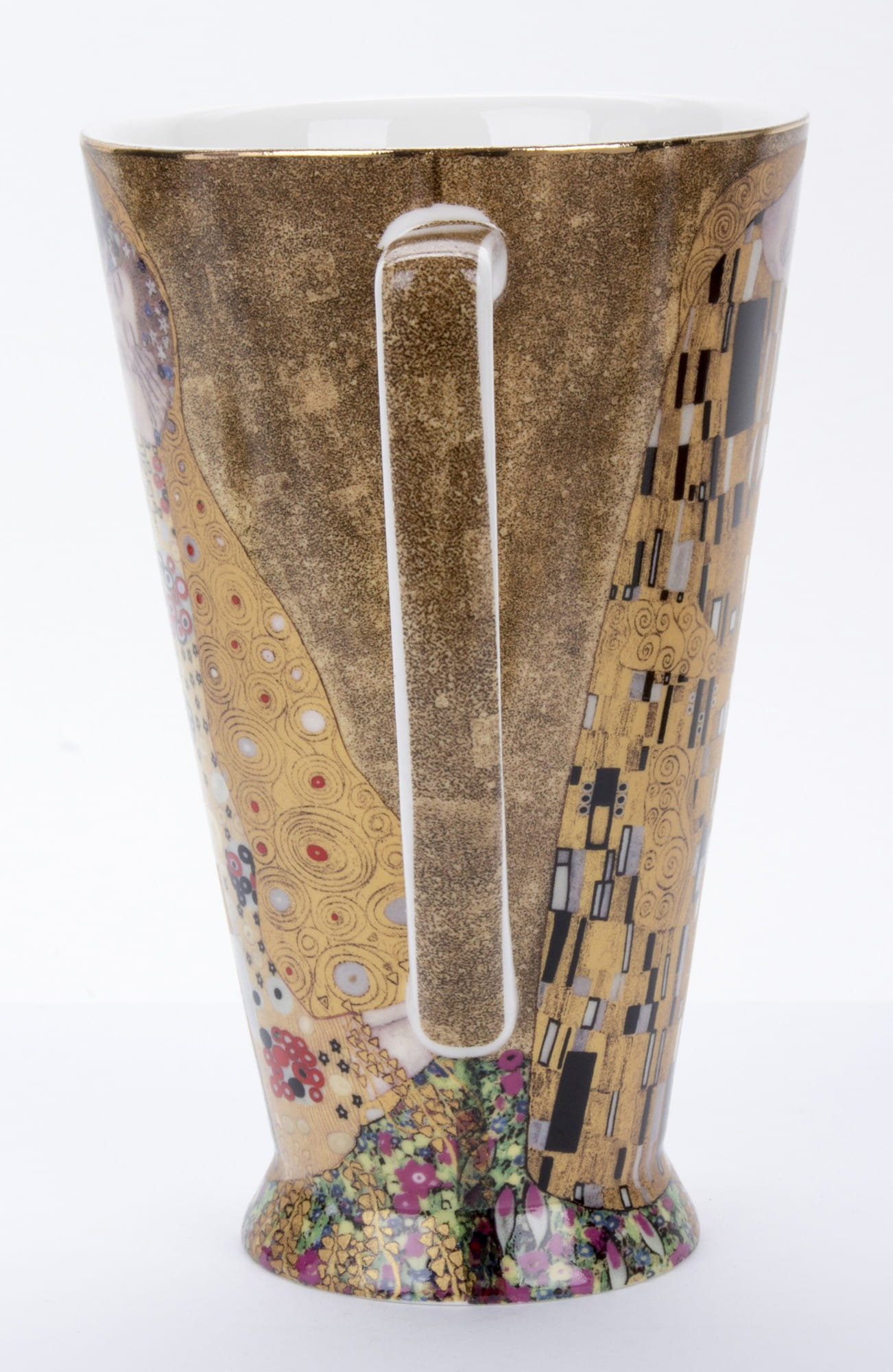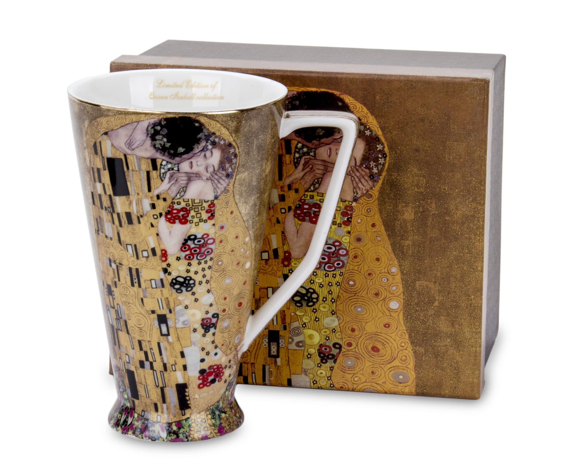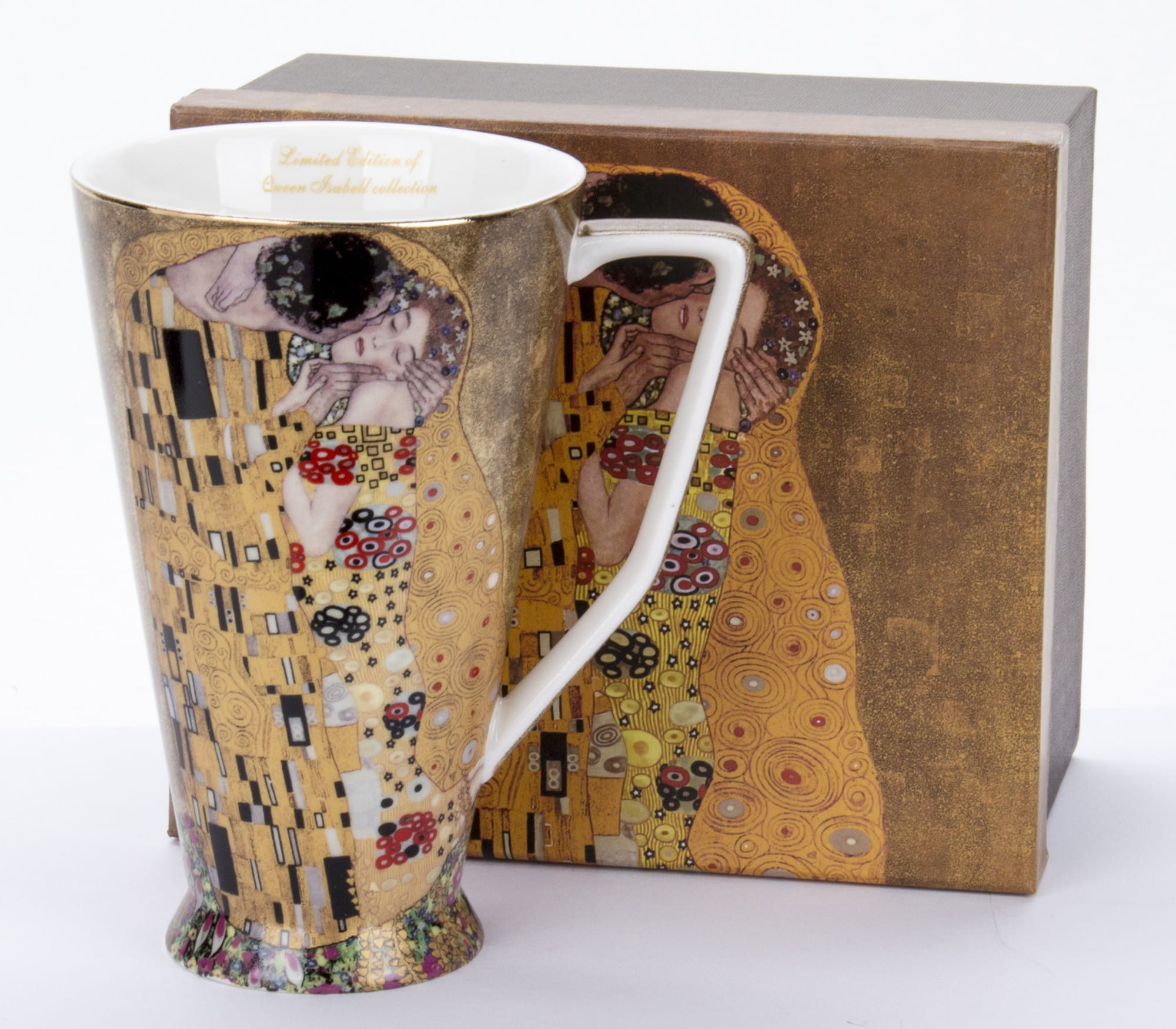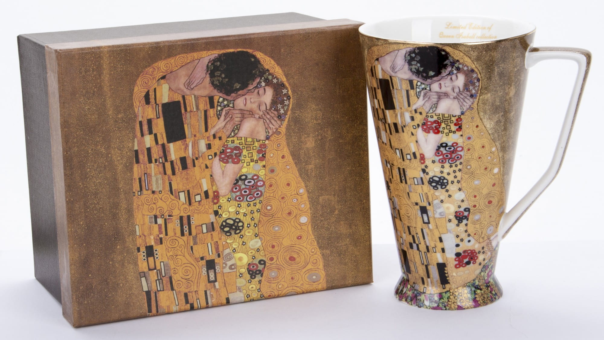 Każdy element wykonany jest z wysokiej jakości porcelany i ozdobiony złotymi detalami, które nawiązują do charakterystycznego stylu malarza. Zmysłowy uścisk pary, bogactwo wzorów i intensywność kolorów sprawiają, że każdy łyk ulubionego napoju staje się chwilą wyjątkowej przyjemności.