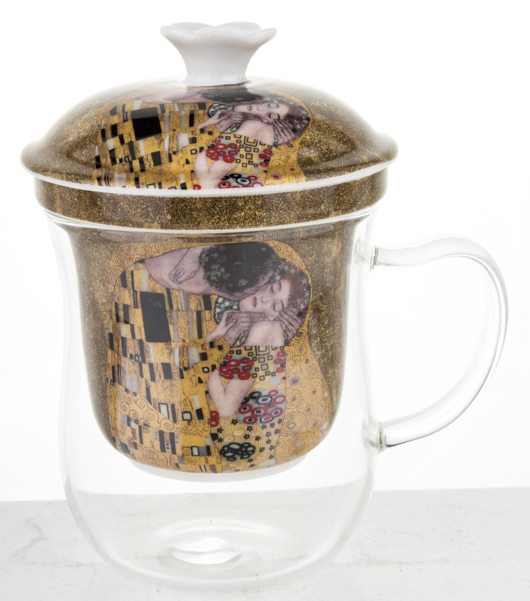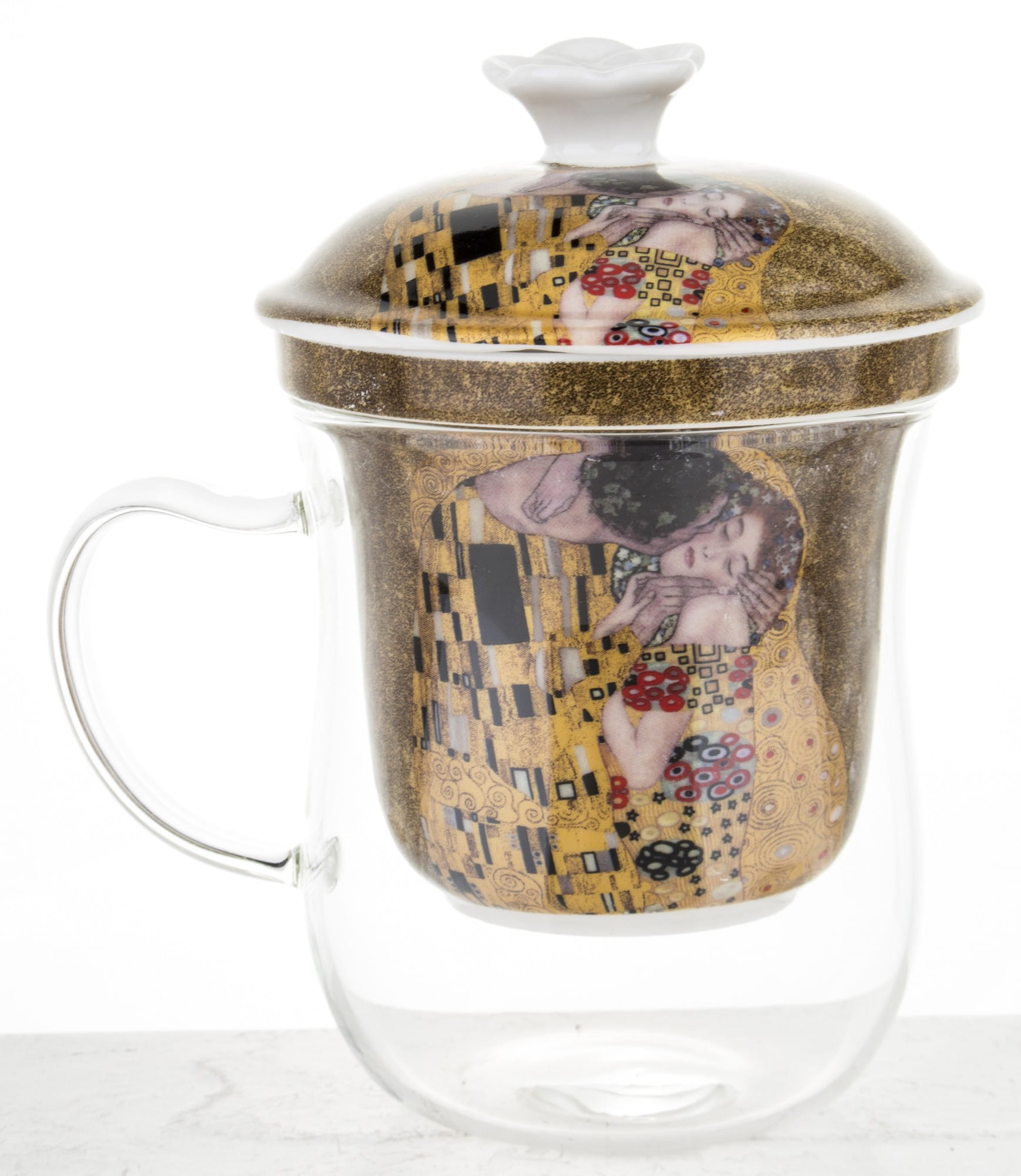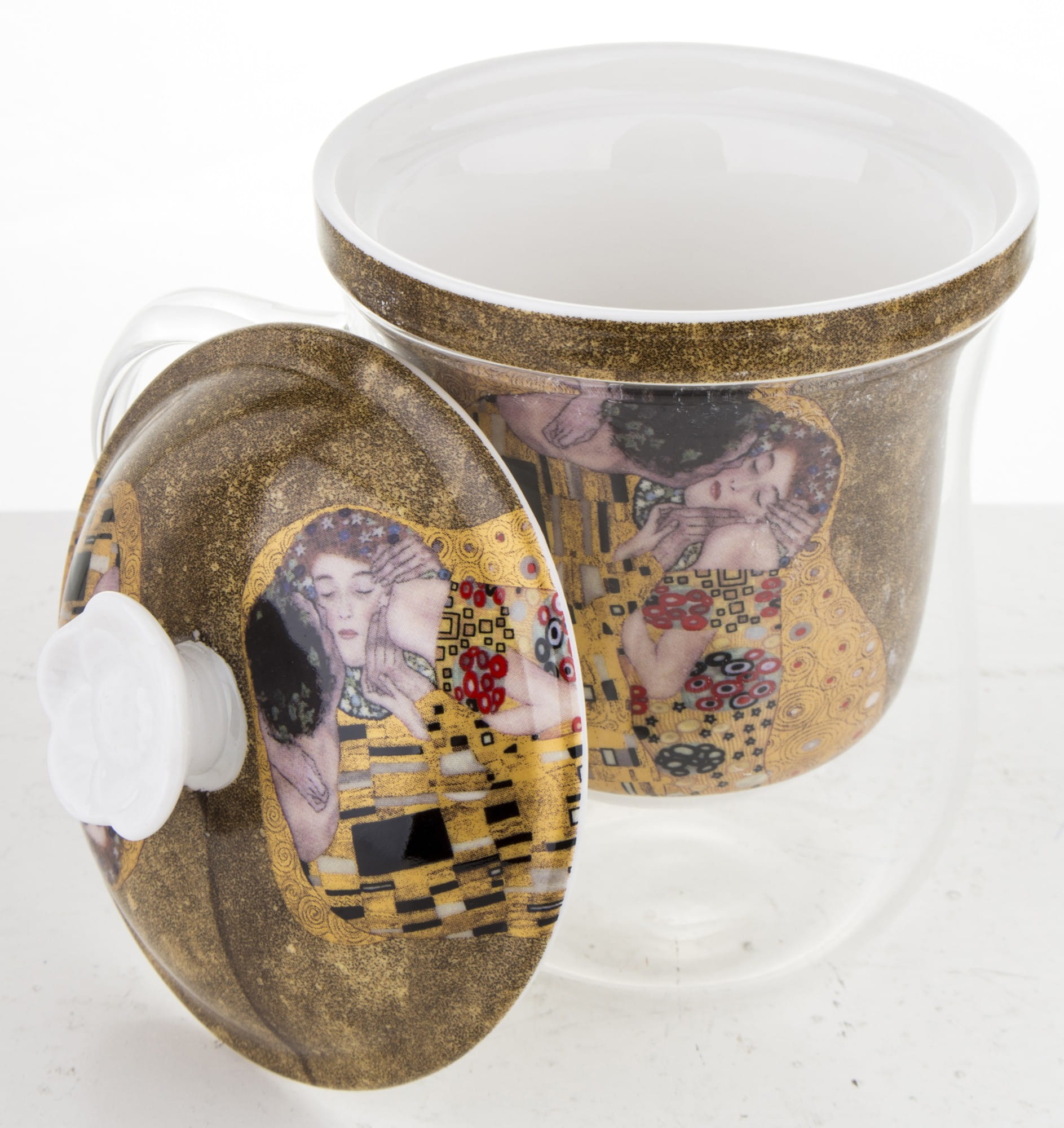 Gustav Klimt Pocałunek Szklany Kubek porcelanowym zaparzaczem 400ml