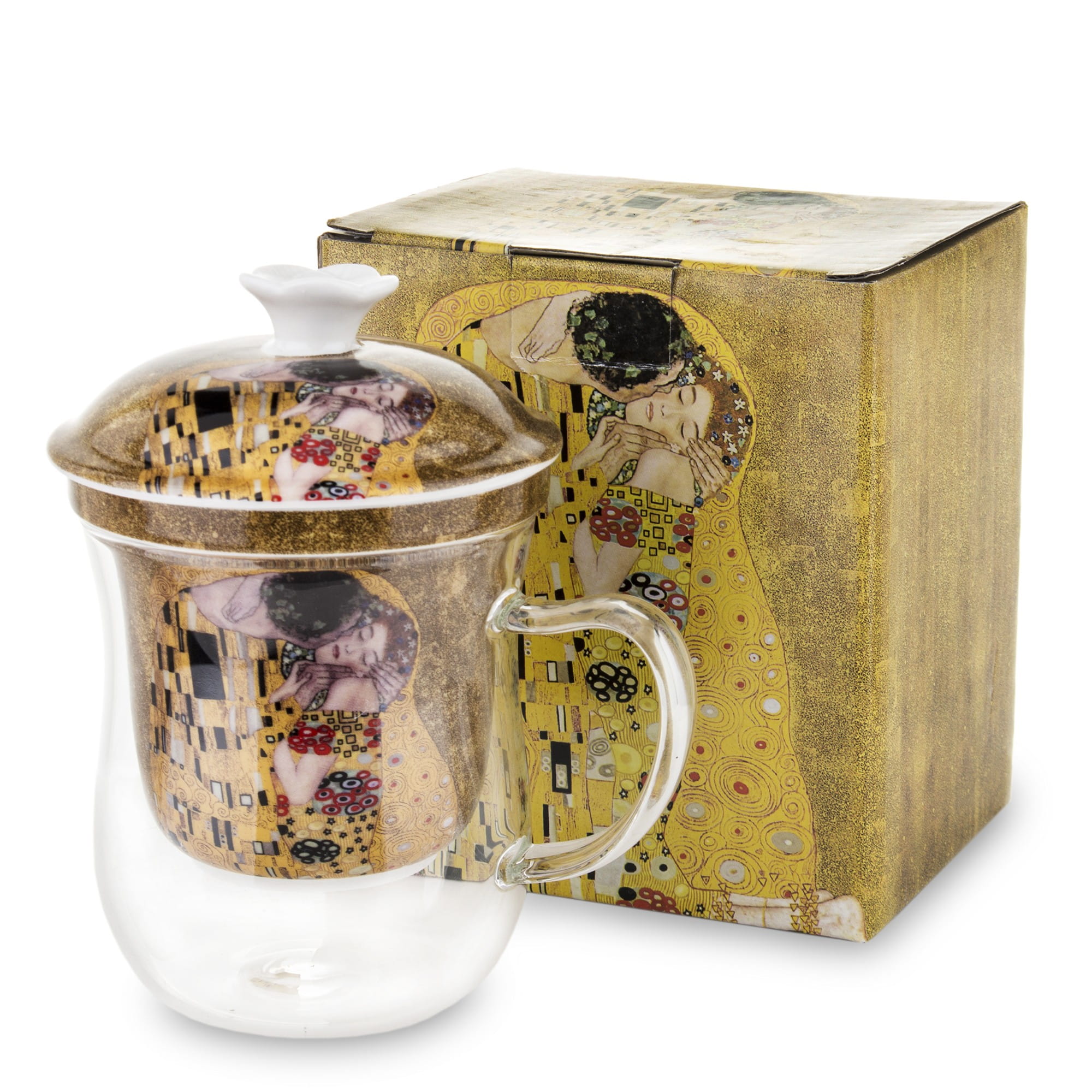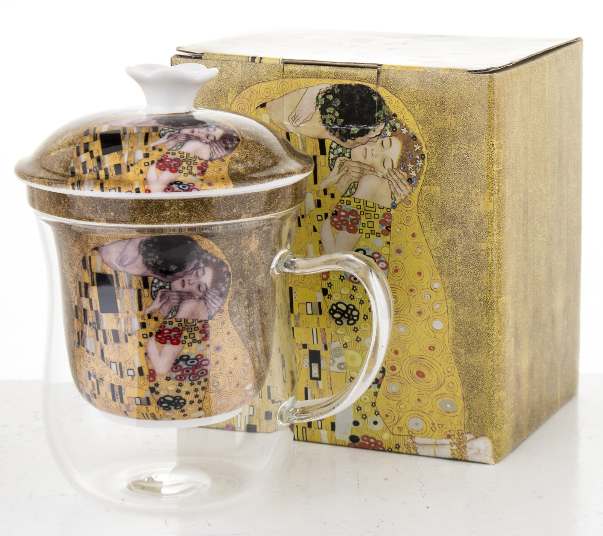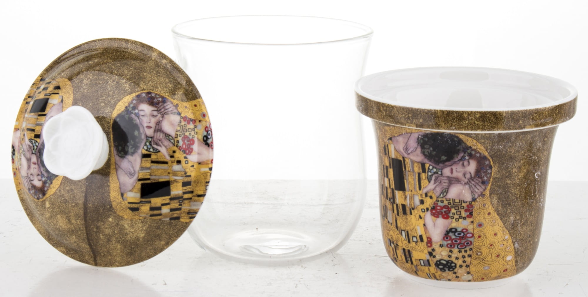Gustav Klimt Pocałunek Szklany Kubek porcelanowym zaparzaczem 400ml